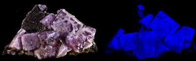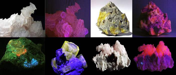 Mineralien nehmen durch diese UV-Strahlen eine verschieden farbige Fluoreszenz