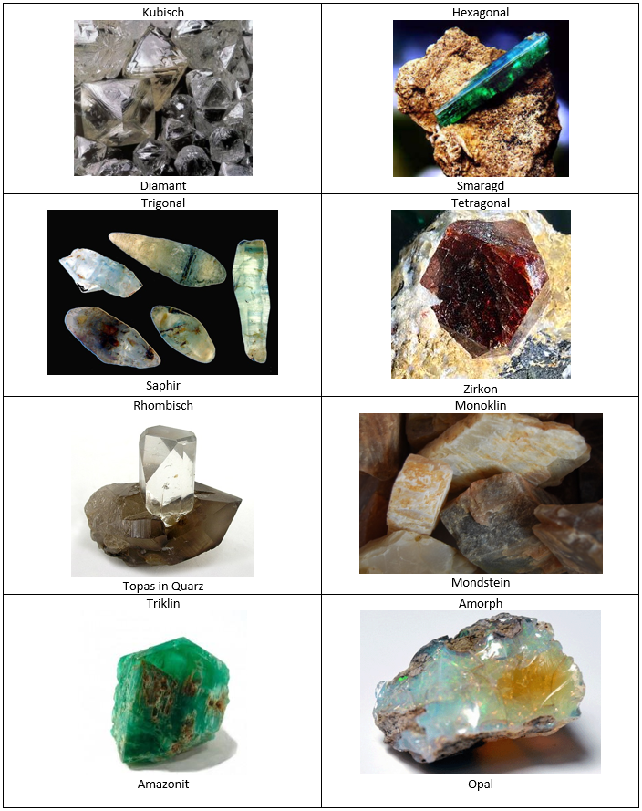 Form. Es gibt 7 verschiedene Kristallsysteme: Kubisch, Tetragonal, Hexagonal,